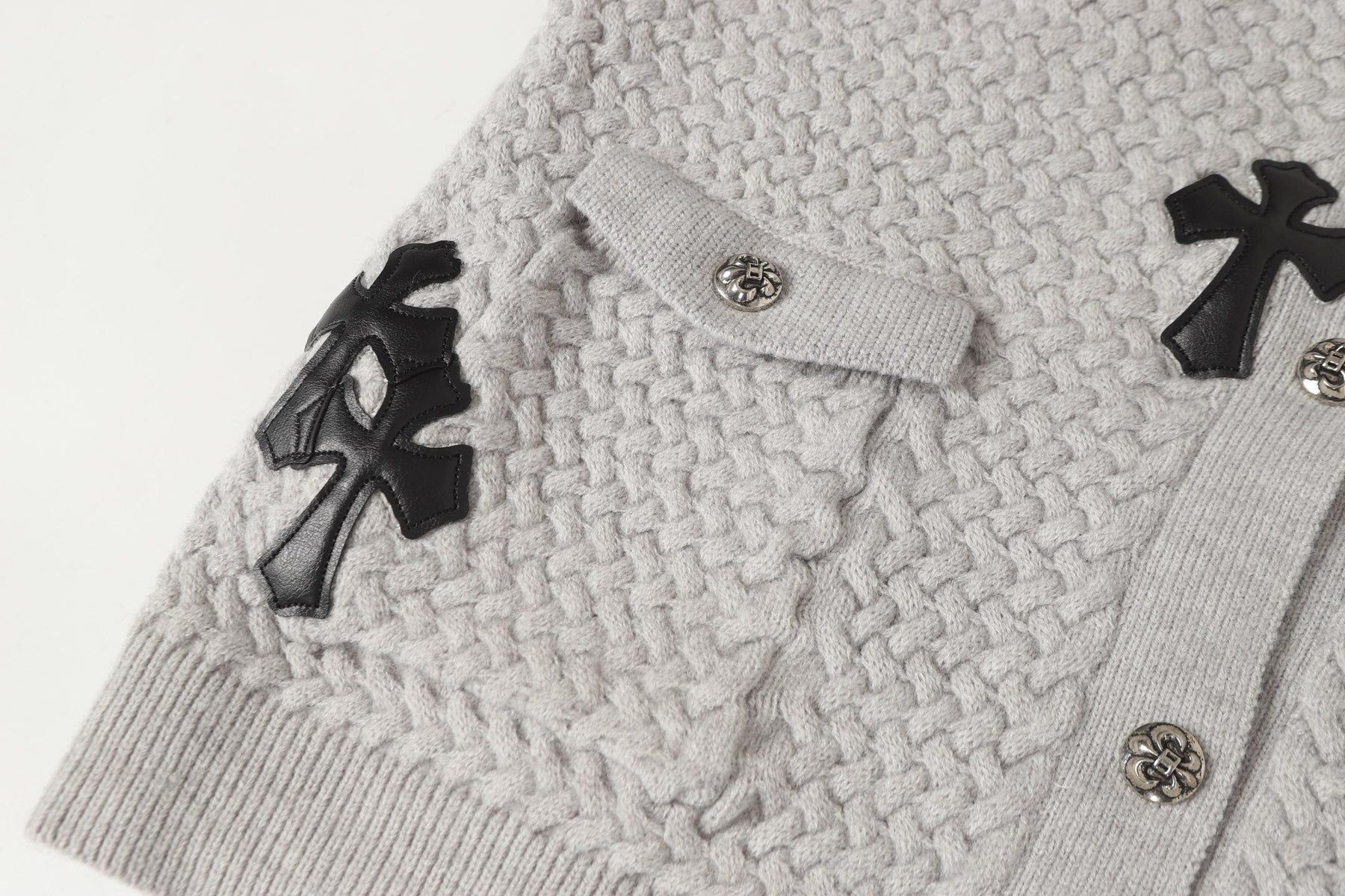 Chrome Hearts Gothic Cross Knit Cardigan - Black Grey Streetwear Jacket 904